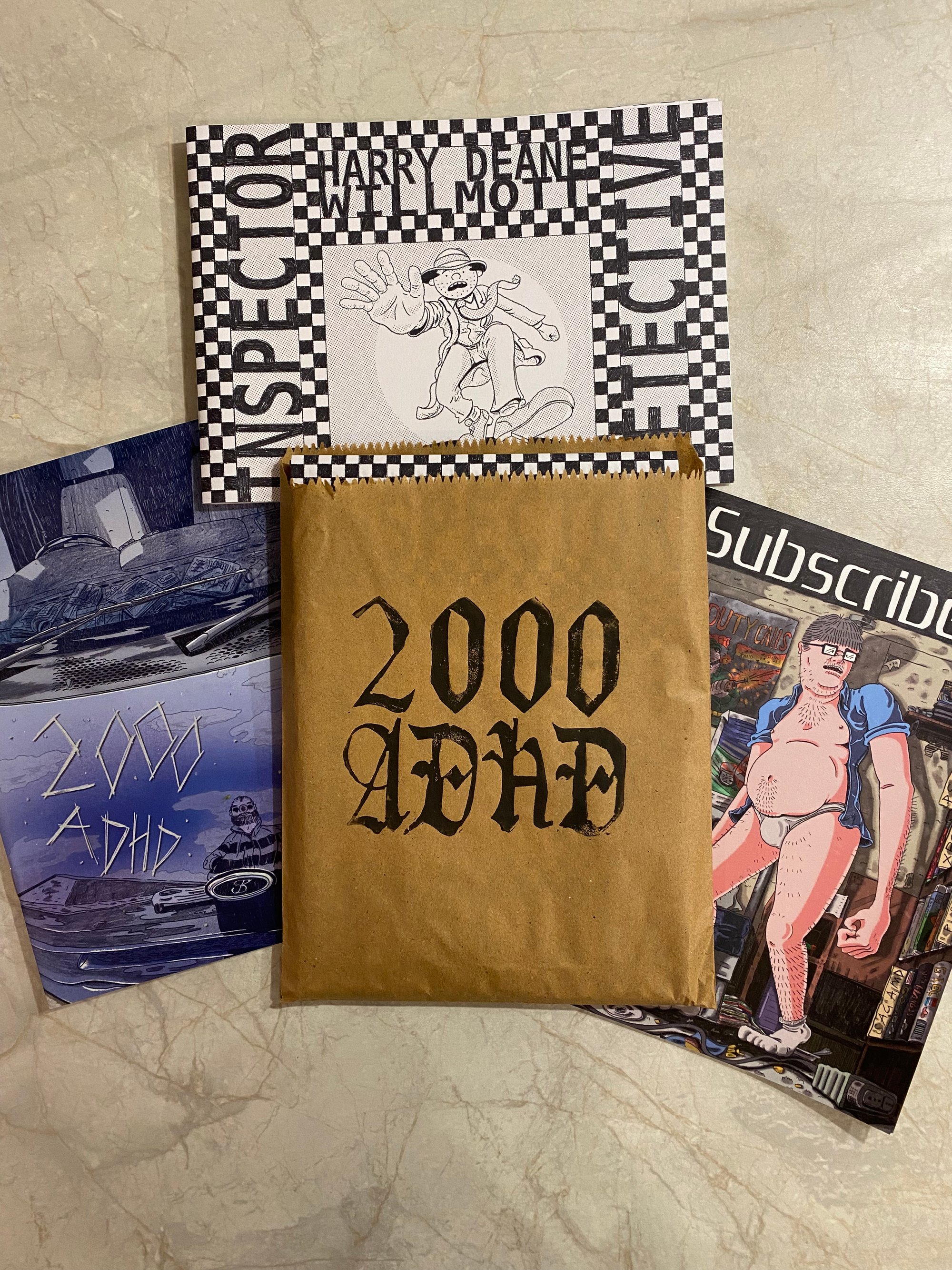 SUBSCRIBE 2000 ADHD INSPECTOR DETECTIVE And a drawing done by me.
